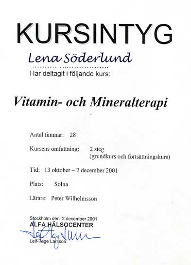 kroppen. Forskning visar att ohälsa och sjukdomar kan orsakas och försämras av obalanser i mineralstatus och eller förhöjda värden på giftiga metaller. En mineraltest ge besked om vad som eventuellt fattas i kroppen, t.ex. kan man se låga magnesiumvärden eller höga kopparhalter, sådant kan bero på vattnet vi har. Själv har jag analyserat mitt eget vatten, det innehåller inte några höga gifter, som t.ex. aluminium, däremot är magnesiumet alldeles för lågt, med sådan vetskap så är det naturligt att ta ett kosttillskott innehållande magnesium. Vissa orter innehåller bly, det kan t.ex. finnas en nedlagd blygruva, sådant visar sej på hårmineralanalysen. På människor syns det ofta kvicksilver i analysen, finns det inte, så är människan ofta amalgansanerad eller har få lagningar i tänderna. Finns kvicksilver på hund så beror det oftast på många vaccineringar. Aluminium på hund kan också härledas till vaccineringar, se www.kvicksilver.org/0008/vacciner.html., medan det på människor kan bero på överanvändning av läkemedel. Arsenik är allvarligt att ha mycket av, detta gift kan bero på markförekomst, gammalt trä. På hund så kan anledningen vara ätande av så kallade oxhudsben, dessa ben är behandlade med kadmium och arsenik, garvas som annat läder. (För övrigt är det tveksamt om de består av oxhud, numera köps hundskinn från Kina för bearbetning till hundmat, vilket är godkänt av Jordbruksverket. Egna brunnar kan innehålla arsenik, att analysera vattnet rekommenderas varmt. Såvitt jag känner till finns ingen metod att rena vatten från arsenik. Den allra vanligaste anledningen till hårmineralanalys på hund tror jag beror på att många är oroliga för att kalk – fosforkvoten är den rätta under uppväxten. Den är ju mycket viktig. Det finns veterinärer som hävdar att den skulle bli felaktig vid egen tillagnig av hundmat. Kalk tillsättes i torrfoder, oftast den billiga varianten ”karbonat”, med några få % smältbarhet, det är dessutom viktigt med en tillräcklig mängd saltsyra för upptaget . Mjölksyrad kalk är kalk som behandlats med mjölksyra för högre smältbarhet. Huruvida påstående att fodergivan skulle bli felaktig vid egen tillagning beror på okunskap eller ekonomiskt vinsttänkande hos veterinären vet jag ej. De har ju en icke försumbar inkomst genom att sälja torrfoder och sponsras med allehanda prylar av foderfabrikanter. För att vara riktigt säker på att mitt sätt att utfodra hund så har jag analyserat mina egna hundars mineralstatus. Snyggare staplar har jag aldrig sett, inte heller någon annan jag visat dem för. Mer ingående fördjupning i Hårmineralanalys kan du få på Ana Fysens hemsida www.anafysen.se/ där jag gått min utbildning eller Nutri Tech www.nutri-tech.nu/ vilka ombesörjer sändandet till USA, samt översättning av analyserna. Lena